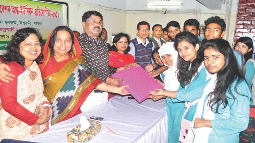 Students of all educational institutions located in Ishwardi municipality and the seven unions of the upazila participated in the competition held at the upazila parishad auditorium. Participants performed national anthem in solo and chorus.