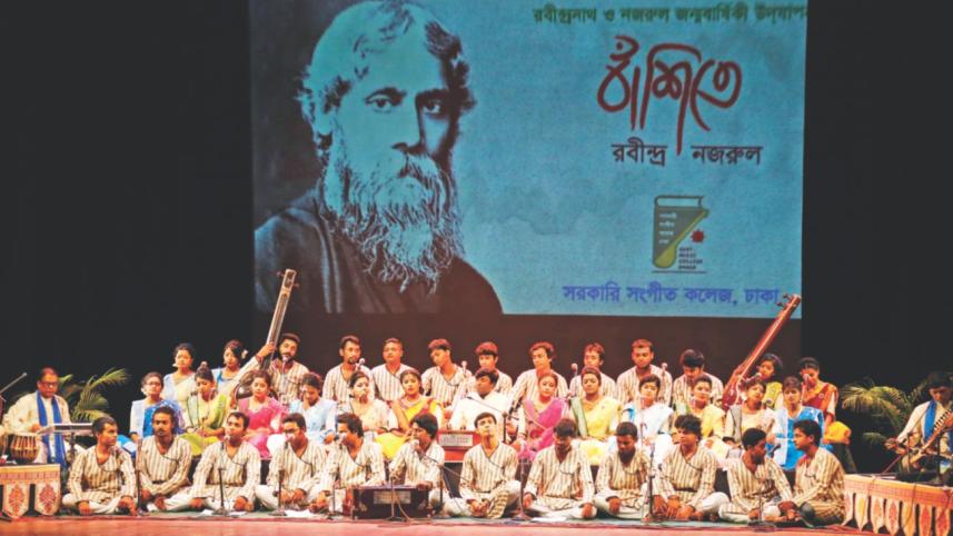Marking the birth anniversaries of Rabindranath Tagore and Kazi Nazrul Islam, Government Music College arranged a musical soiree featuring dance and recitation at Bangladesh Shilpakala Academy (BSA) on June 14.