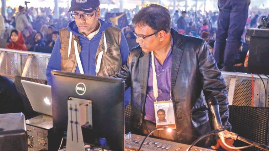 Mumbai-based Chandorkar, an accomplished sound engineer with 25 years of experience, has been touring the world with Sonu Nigam - one of India's biggest singing stars - for 15 years. This is his second year working at the festival. “I have worked previously with the London Philharmonic and Birmingham Philharmonic, so I had that sound in my head. I came to Dhaka on December 21 for a private show, and at the time the sound system was being set up here. I came and consulted with the event management here about the setup. And there have been lots of emails and diagrams being emailed back and forth for a while. I carried a lot of microphones with me as well; we needed to use 70-odd microphones for the orchestra. Typically the sound is captured with overhead 'open' mics, but because this is an open field, it was capturing the wind so we used closed mics on the violins. We blended the open and closed mics to create the right sound. Western classical musicians do not use stage monitors because they only follow the conductor; for the combined part I had to give them monitor because otherwise they cannot hear what Dr. Subramaniam and his ensemble is playing. I also heard that car sounds and horns from the road behind were being picked up by the open mics, so I requested the organisers to keep traffic restricted during that performance. All in all it was quite a complex process, but at the end of it everyone was very happy with it,” he said.