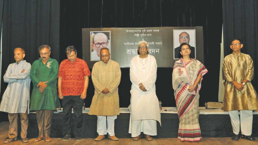 Renowned cultural personalities, litterateurs and artistes shared their fond memories speaking highly of the recently deceased maestros. Bishwajit Roy, general secretary of BSSSP, delivered welcome address. Later, he rendered a Sikandar Abu Zafar song, composed by Sudhin Das.