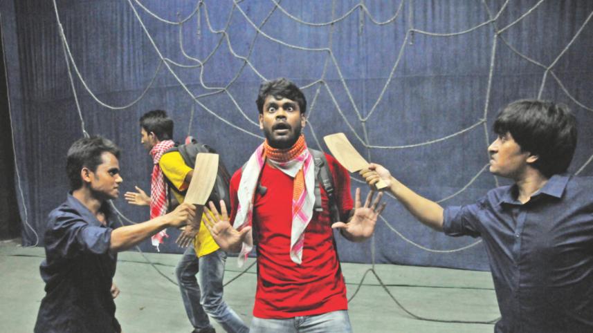 Silence fell over the darkened hall of Kazi Nazrul Islam Auditorium of Rajshahi University on the night of October 4, as only the chorus call by performers and background music vibrated through the hall. The audience silently stayed glued to their seats till the lights came on. Then they gave the actors a standing ovation.