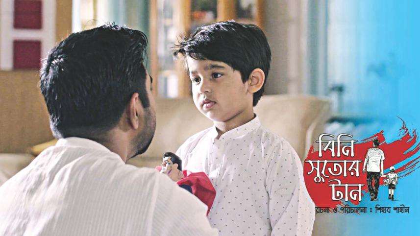 Even though Apurba is arguably the most sought after television star in the industry today, he is upstaged by the adorable debut of his son Zayyan Ayyash in the upcoming telefilm Bini Shutor Taan. The telefilm is directed by Shihab Shaheen. The recently released trailer shows the intense dynamics of the father-son relationship after the mother, played by Zakia Bari Mamo, dies in a tragic accident. The telefilm also features Hasan Imam, Laila Hasan, Pavel Islam, Rajib Saleheen, Manzurul Karim and others. Bini Shutor Taan will be broadcast on Channel 9 at 2:30 pm on the second day of Eid.