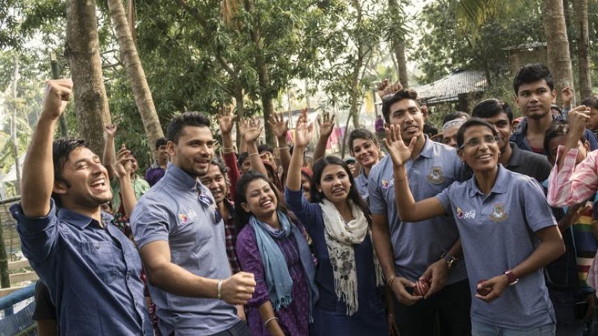 Bangladesh cricket stars Mashrafe, Soumya, Jahanara and Salma will appear in the season finale of BBC Media Action's TV programme “Amrai Pari”, tonight on ATN Bangla. The special episode will see them join a community in Satkhira whose homes are waterlogged for nine months of the year. The stars took time out of training to visit the village of Tala upozila and work with people living there. “Amrai Pari” celebrates the power of disaster affected communities in Bangladesh to come together to overcome challenges in their lives.