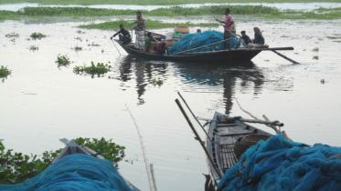Rampant use of closely knitted mesh nets, popularly known as current nets, poses threat to fish stock in Gaznar Beel in Pabna’s Sujanagar upazila.