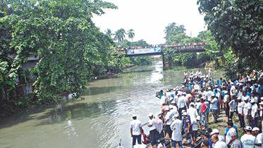 The nearly dead Ichamati river passing through the district town sees flow due to the pressure of the water from the mighty Padma