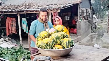 A young farmer in Pabna Sadar upazila is trying his luck by growing colourful cauliflower as it is easy to grow and provides better returns than the white variety.