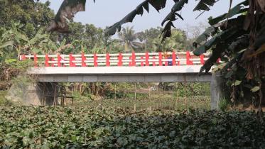 Construction of an unplanned bridge supposedly for road connectivity is choking the Ichhamati river in Pabna Sadar upazila.