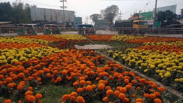 A plantation of flowers has turned the once mundane Dashuria intersection in Pabna into a spectacle.
