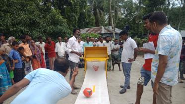 Villagers of Purandar, a remote village in Pabna’s Faridpur upazila, quickly finish their household activities and rush to the field, hoping to participate in a game show where they can win various prizes.