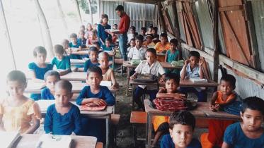 Jannati Khatun, a fifth-grader from Mehernagar village in Sirajganj’s Belkuchi upazila, lost her home and school to the Jamuna, forcing her and her family to seek refuge in a roadside shed and making it difficult for her to continue education.