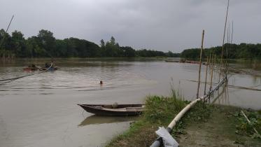 Indiscriminate sand lifting from the Bongshi river in Bashna area of Dhamrai upazila is posing a threat to nearby farmlands and homesteads, escalating the risk of river erosion.