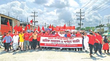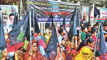 Workers from tannery and garment factories demonstrated in Savar on Wednesday to press home their demands -- including increase in wage and development of workplaces -- in observance of May Day.