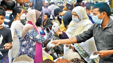 Shoppers thronged grocery stores, super shops and kitchen markets across Dhaka yesterday following the announcement of a fresh nationwide lockdown to curb the spread of Covid-19.