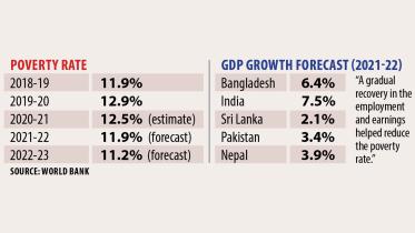 The World Bank in a report noted a gradual recovery in employment and earnings in Bangladesh, forecasting that the country’s poverty rate will come down to pre-pandemic levels in the current fiscal year.