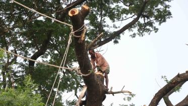 Prison authorities in Rajshahi have been felling at least 561 trees, many of those a hundred years old, at a planted forest on its land behind Rajshahi Central Jail at Sipaipara area in the city, reportedly to build a training facility.