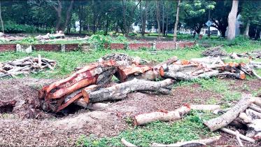 To make space for new administrative and academic buildings, authorities of Rajshahi University of Engineering Technology (Ruet) have felled around 50 trees recently, most of which are over half a century old.
