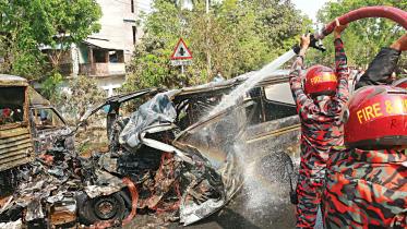 A deadly crash on Dhaka-Rajshahi highway left at least 17 people dead, 11 of whom were burnt to death after one of the vehicles caught fire.