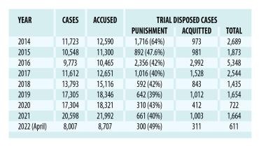 Although Department of Narcotics Control (DNC) shows rising drug cases and arrests in its annual round-up every year, more than half of the cases end up in acquittals.