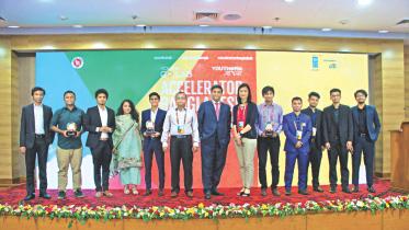 During a national dialogue to foster the start-up ecosystem in Bangladesh, nine start-ups consisting of two members each were given