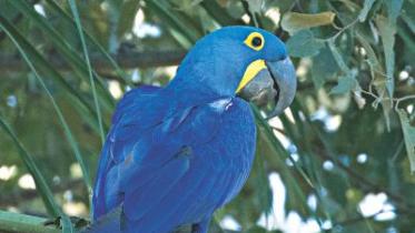 The Hyacinth Macaw has to be seen to be believed. The world's largest parrot, with big mischievous eyes, is coloured deep blue with splashes of yellow. It is an endangered species and one of the 1900-odd types of birds found in Brazil.