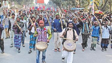 Indigenous Santals from Rangpur region formed a human chain and laid siege to the Deputy Commissioner's office in the city