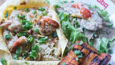 The platter provided the guests with a burst of flavours. You had the very hot and spicy Mongolian beef, the milder prawn item and the tangy olives in the salad.