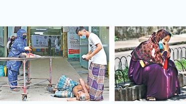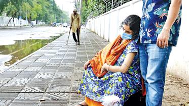 Yesterday, we published a caption story of the 24-year-old Jhuma sitting on the footpath in the vicinity of Shahid Minar in a state of near collapse, supported by her husband, Shujan, standing next to her.