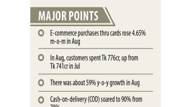 Card transactions for e-commerce purchases increased slightly in August following a slump in July, when people were reluctant to place orders after it emerged that a few online platforms were scamming people.