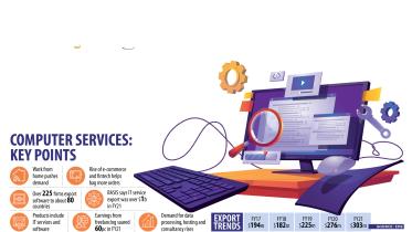 Computer services export from Bangladesh has crossed the $300-million mark as the coronavirus pandemic turbocharged the global demand for data processing, hosting and consultancy services.