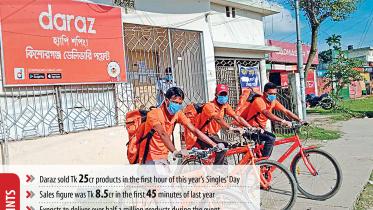 Daraz registered a surge in sales during its Singles’ Day shopping juggernaut as it received one lakh online orders worth Tk 25 crore in the first hour of the campaign.