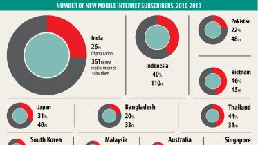 The number of internet users in Bangladesh expanded by 3.3 crore between 2010 and 2019, bringing another 20 per cent of the population online, according to a recent report.