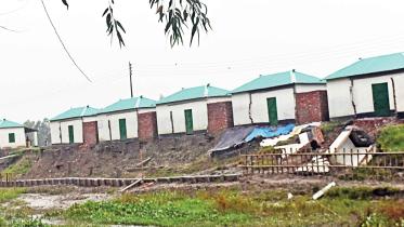 Seven out of 22 houses built for homeless people under the Ashroyon project-2 have partially collapsed following moderate rainfall in Koyerkhali area of Bogura’s Sherpur upazila four days ago.
