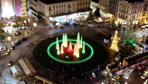 Victory Day: Greece's Omania Square fountain lit up in red and green