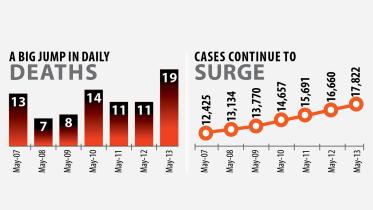 The number of fatalities and infections due to novel coronavirus is increasing alarmingly in Bangladesh with the country recording 19 deaths and 1,162 new cases in 24 hours -- the highest single-day spike.