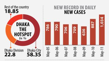 The country reported a record single-day surge of detected coronavirus cases -- 1,034 -- as the tally crossed the 15,000 mark, while 11 new deaths took the death toll to 239.