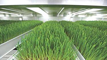 An indoor facility with a hydroponic fodder unit can provide any commercial dairy farm with enough green grass to meet the nutrition needs of the animals.
