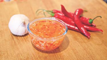 Crush the garlic and chilli into a fine paste. In a sauce pan, mix sugar, vinegar, water, garlic, chillies and salt. Cook the sauce mixture on low heat until sticky or for about 15 minutes. Turn off the heat and let it cool down.