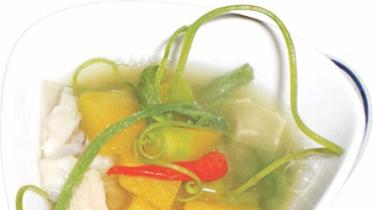 To make soup, combine all the ingredients and seasoning; simmer for 1 hour on low heat. Remove froth time to time, and discard the bones.