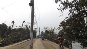 Hundreds of electric poles, now standing in the middle of the road due to widening of a 21-kilometre regional highway in Barguna, causes trouble for vehicular movement, in addition to disturbance in the road renovation work.