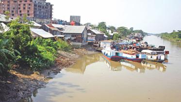 The Khakdan river flowing through Barguna town is being filled up by local influential people who are constructing illegal structures on both sides of the river.