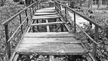 With most of the sleepers broken or displaced, the iron bridge on Humoibunia canal in Amragachhia union of Mirzaganj upazila under the district remains virtually useless for three years, much to the sufferings of thousands of people.
