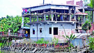 Two local influential men have continued building permanent structures occupying lands of Kalaiya canal in Baufal upazila under the district, defying orders issued by the local land office.
