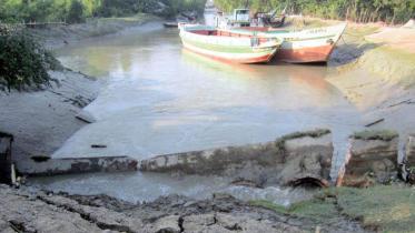 Saline water is entering vast agricultural lands at Fashipara village in Kalapara upazila under the district following collapse of a sluice gate