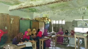 Mariam Akhter Anika is a 10th grader at Pangashia Girls’ High School in Patuakhali’s Dumki upazila. However, during most of her classes she remains distracted -- staring at the ceiling and the beams to watch out when the plaster falls off.