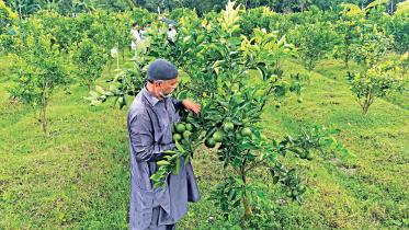 Former expat Habibur Rahman Matubbar, a resident of Kewabunya village under Amtali upazila in Barguna, has been enjoying great success in cultivating malta on his 15 bighas of land for the past seven years or so.