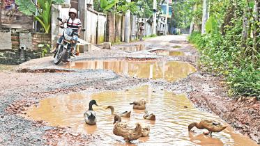 A large number of paved roads in Barishal city are in poor shape, with the monsoon season is bringing out the worst in these.