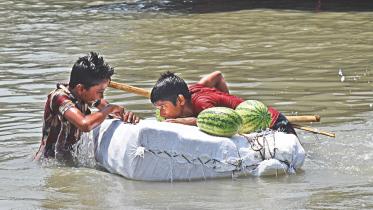 Like the kingfisher dive-bombs into rivers to prey on small fish, these boys plunge into the Kirtankhola to collect stray watermelons every day of the season.