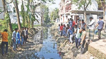 Fed up by continued indifference from authorities, a group of youngsters voluntarily started cleaning Tajkathi canal in Barishal city on Saturday.