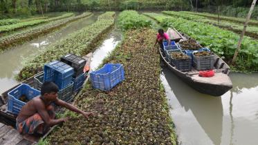 Traditional vegetable cultivation on floating beds sees a gradual increase in Banaripara upazila of Barishal.