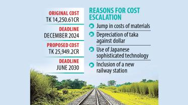 The cost of the Joydebpur-Ishwardi rail line expansion project may increase to Tk 26,000 crore, over 80 percent higher than the original estimate, mainly due to long delay in starting work after China decided not to fund the project.